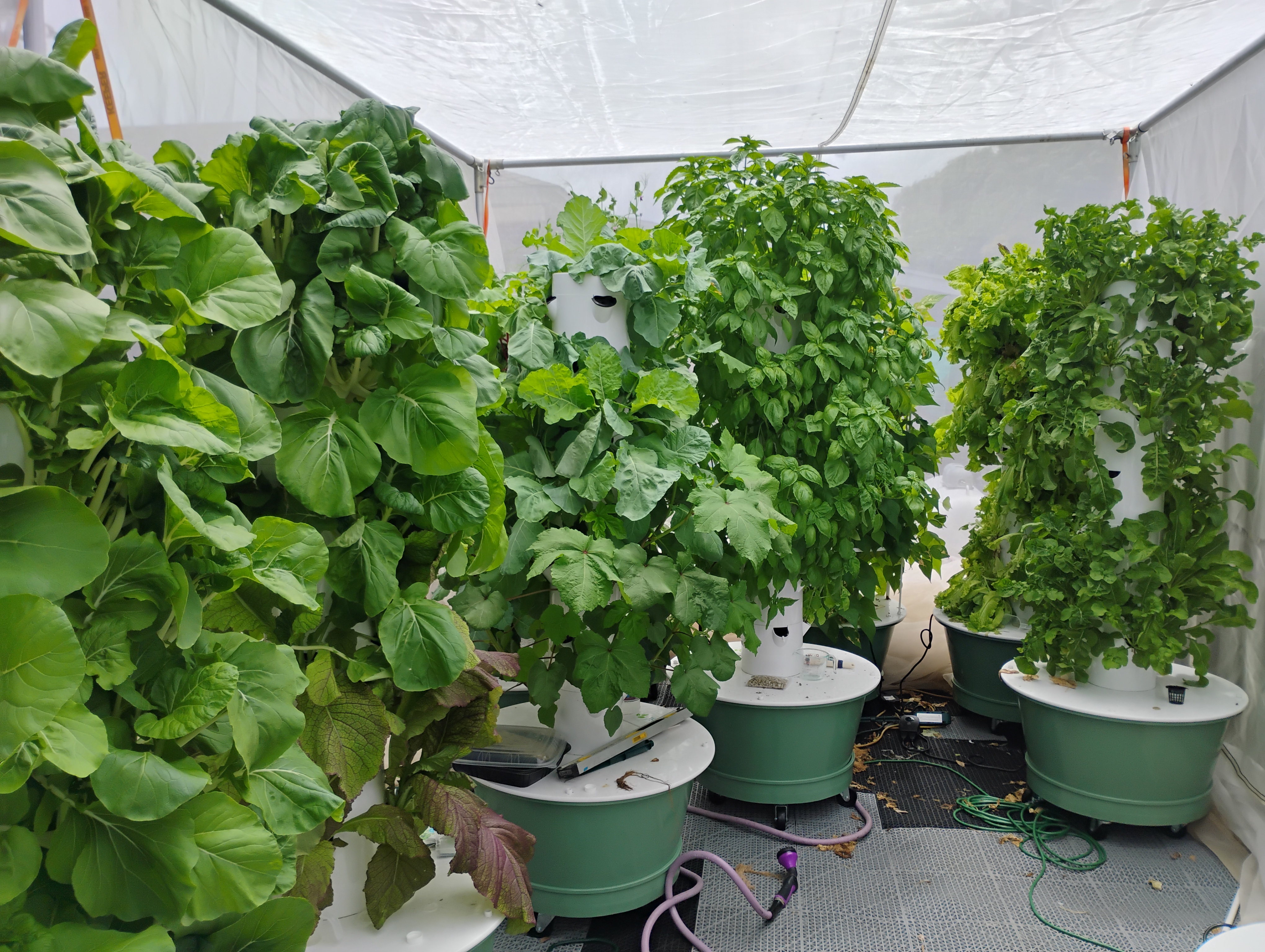 Tower Gardens use considerably less space, time, and water to grow food as compared to growing in soil. There is no weeding and the towers take ~45 minutes to set up. Harvests can happen in 2 to 6 weeks depending on what's planted. After the initial set up, maintenance can be as little as 30 minutes per tower a week to refill the reservoir with water and nutrients and test pH levels, depending on what's being grown. Cleaning the towers involves soaking, a little scrubbing, and rinsing.